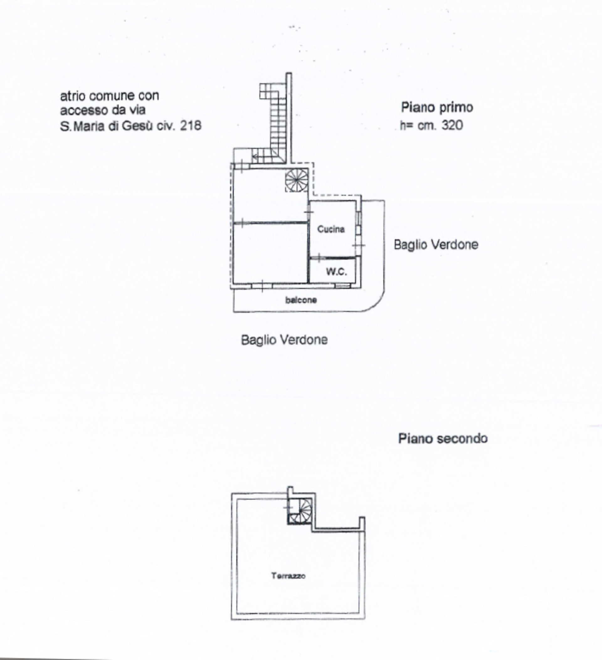 Sito al primo piano di una palazzina, l'ingresso al condominio è su un cortile condominiale su cui rimane una scala indipendente che da accesso a questo immobile al primo piano con esposizione angolare su baglio Verdone.